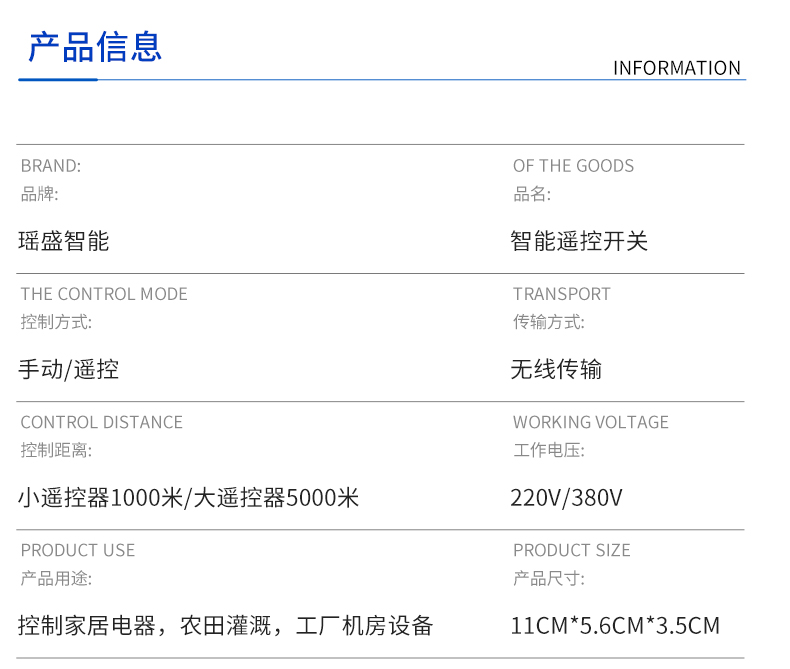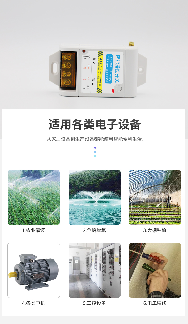 5000米遙控開關(K6系列) 產品規(guī)格 功能特點 資料下載 品名:遙控開關 型號:YS-K6 控制方式:RF遙控/手動控制 傳輸方式:RF傳輸 控制距離:RF遙控器1000米-3000米-5000米可選 ) 工作電壓:220v、380v可選 用途:家電控制、農田灌溉、工廠機房設備。多個控制器可在一個app上綁定控制!功能強大便捷!